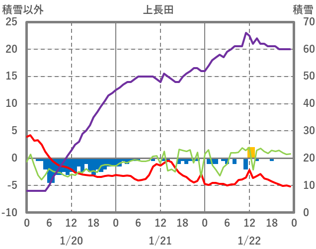 | 日 | 時 | 気温 | 降水 | 風向/風速 | 日照 | 積雪 | 降雪 |