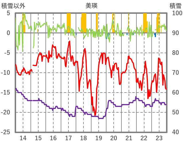 | 日 | 時 | 気温 | 降水 | 風向/風速 | 日照 | 積雪 | 降雪 |