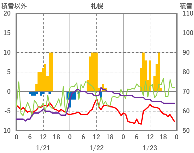 | 日 | 時 | 気温 | 降水 | 風向/風速 | 日照 | 積雪 | 降雪 |