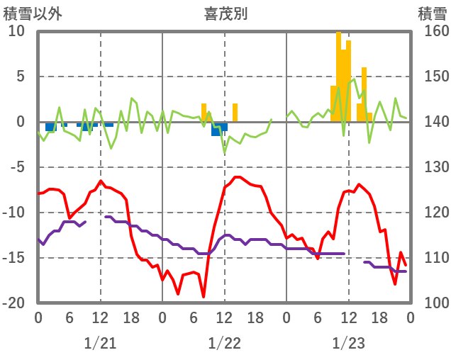 | 日 | 時 | 気温 | 降水 | 風向/風速 | 日照 | 積雪 | 降雪 |