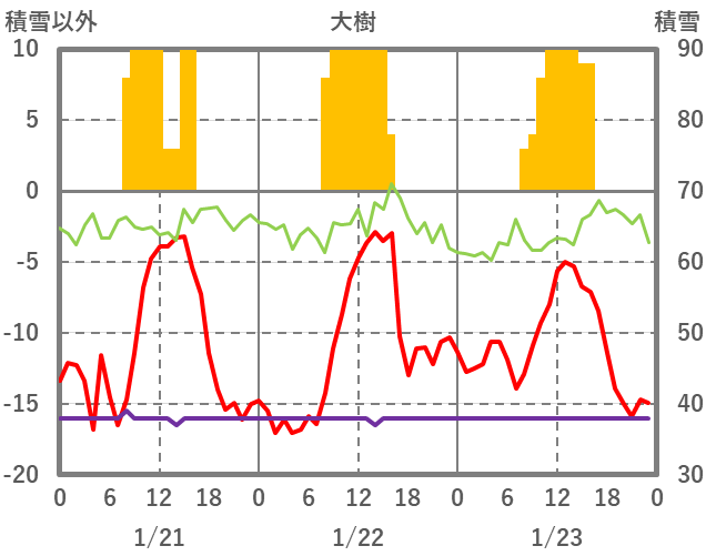 | 日 | 時 | 気温 | 降水 | 風向/風速 | 日照 | 積雪 | 降雪 |
