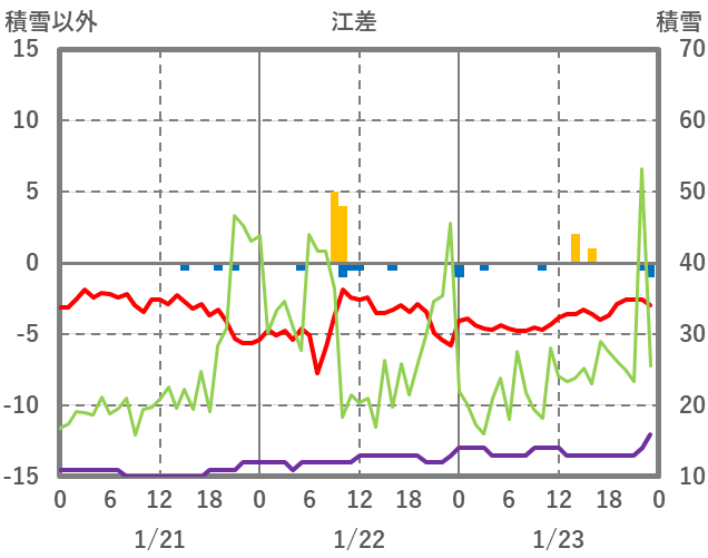 | 日 | 時 | 気温 | 降水 | 風向/風速 | 日照 | 積雪 | 降雪 |
