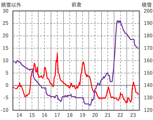 | 日 | 時 | 気温 | 降水 | 風向/風速 | 日照 | 積雪 | 降雪 |