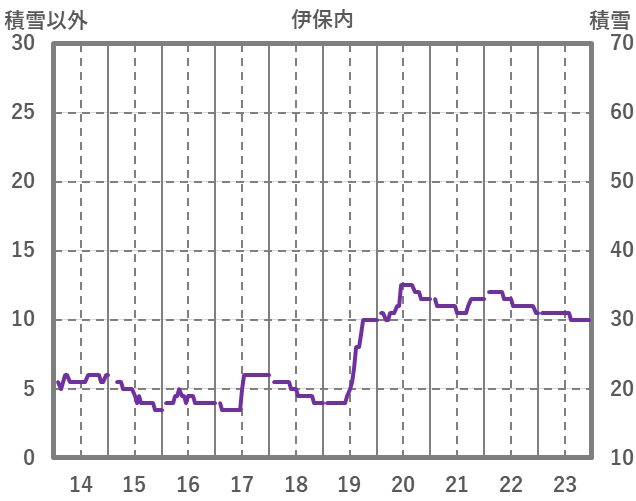 | 日 | 時 | 気温 | 降水 | 風向/風速 | 日照 | 積雪 | 降雪 |