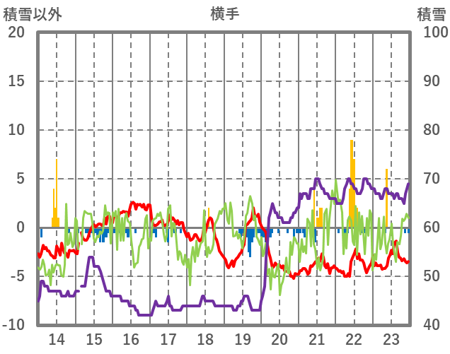 | 日 | 時 | 気温 | 降水 | 風向/風速 | 日照 | 積雪 | 降雪 |
