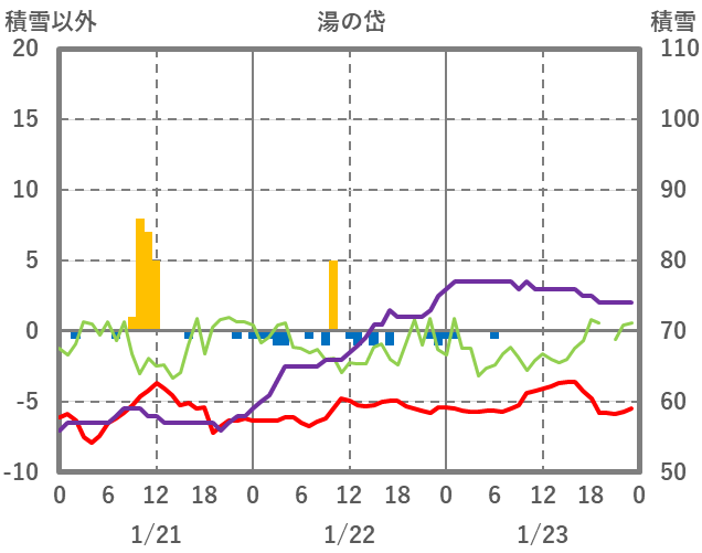 | 日 | 時 | 気温 | 降水 | 風向/風速 | 日照 | 積雪 | 降雪 |