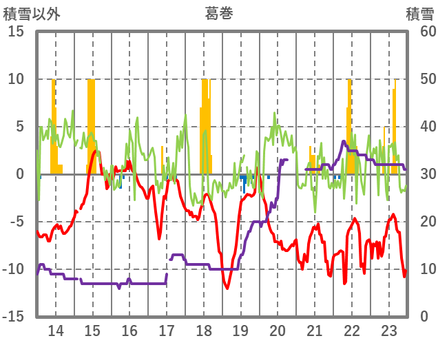 | 日 | 時 | 気温 | 降水 | 風向/風速 | 日照 | 積雪 | 降雪 |