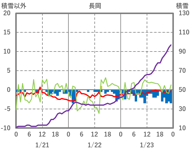 | 日 | 時 | 気温 | 降水 | 風向/風速 | 日照 | 積雪 | 降雪 |