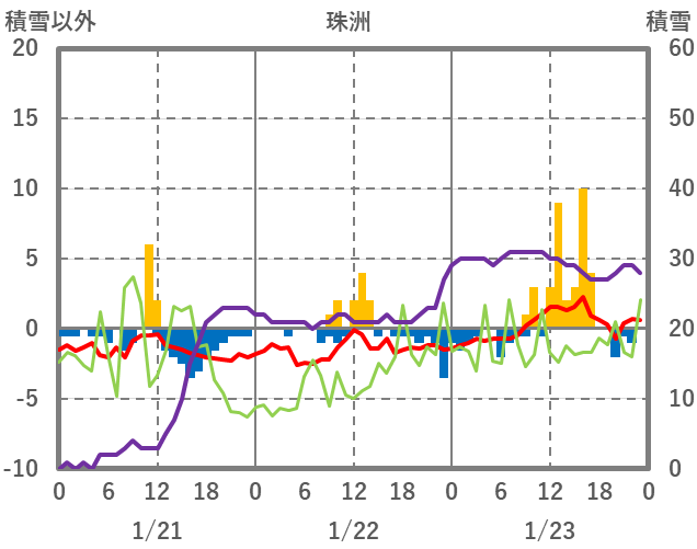 | 日 | 時 | 気温 | 降水 | 風向/風速 | 日照 | 積雪 | 降雪 |
