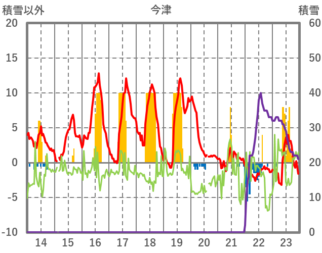 | 日 | 時 | 気温 | 降水 | 風向/風速 | 日照 | 積雪 | 降雪 |