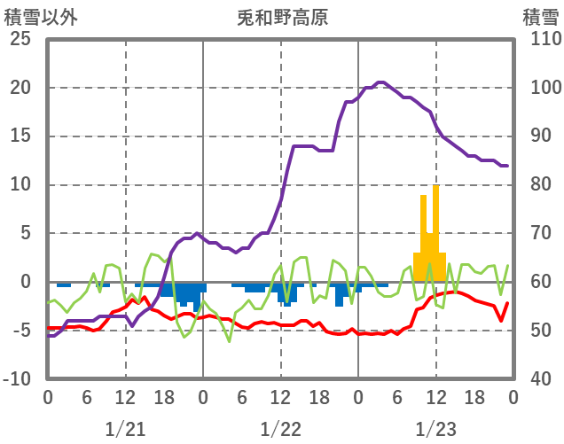 | 日 | 時 | 気温 | 降水 | 風向/風速 | 日照 | 積雪 | 降雪 |