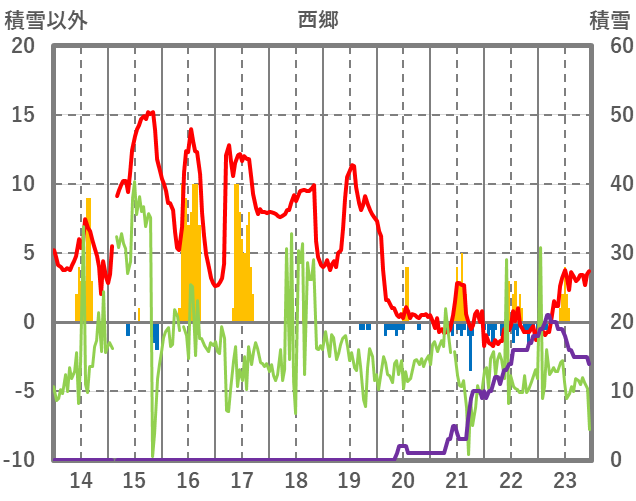 | 日 | 時 | 気温 | 降水 | 風向/風速 | 日照 | 積雪 | 降雪 |