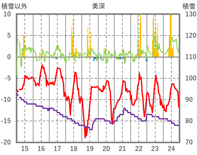 | 日 | 時 | 気温 | 降水 | 風向/風速 | 日照 | 積雪 | 降雪 |
