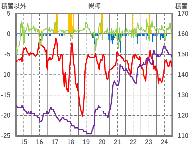 | 日 | 時 | 気温 | 降水 | 風向/風速 | 日照 | 積雪 | 降雪 |
