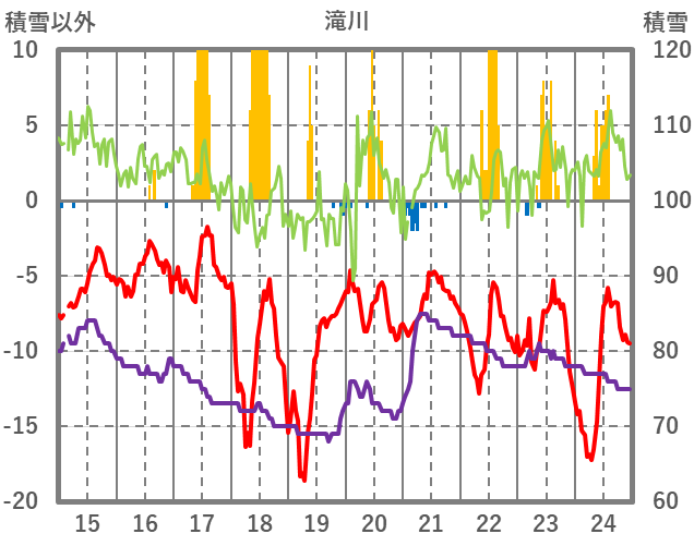 | 日 | 時 | 気温 | 降水 | 風向/風速 | 日照 | 積雪 | 降雪 |
