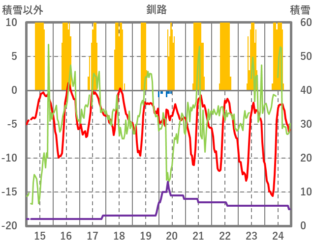 | 日 | 時 | 気温 | 降水 | 風向/風速 | 日照 | 積雪 | 降雪 |