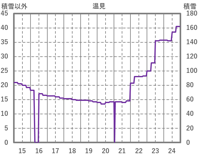 | 日 | 時 | 気温 | 降水 | 風向/風速 | 日照 | 積雪 | 降雪 |