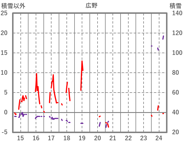 | 日 | 時 | 気温 | 降水 | 風向/風速 | 日照 | 積雪 | 降雪 |