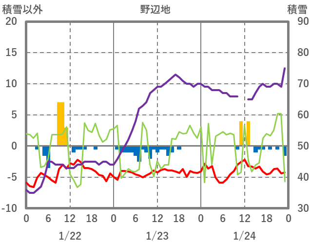 | 日 | 時 | 気温 | 降水 | 風向/風速 | 日照 | 積雪 | 降雪 |