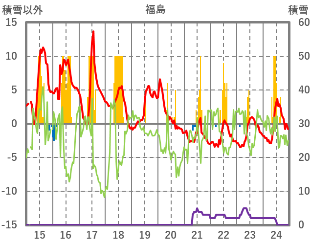 | 日 | 時 | 気温 | 降水 | 風向/風速 | 日照 | 積雪 | 降雪 |