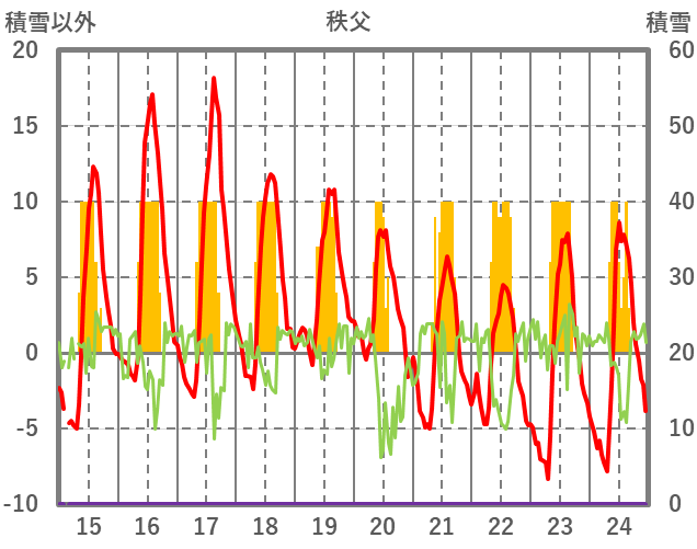 | 日 | 時 | 気温 | 降水 | 風向/風速 | 日照 | 積雪 | 降雪 |
