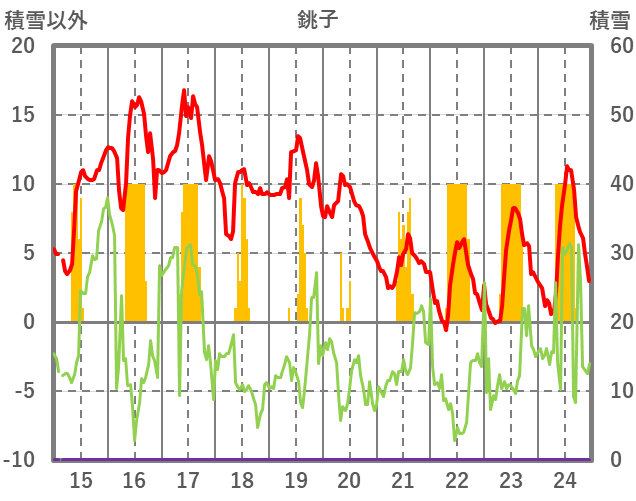 | 日 | 時 | 気温 | 降水 | 風向/風速 | 日照 | 積雪 | 降雪 |