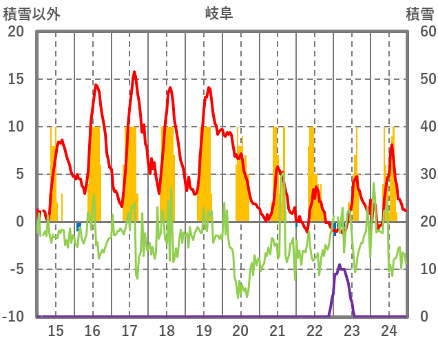 | 日 | 時 | 気温 | 降水 | 風向/風速 | 日照 | 積雪 | 降雪 |