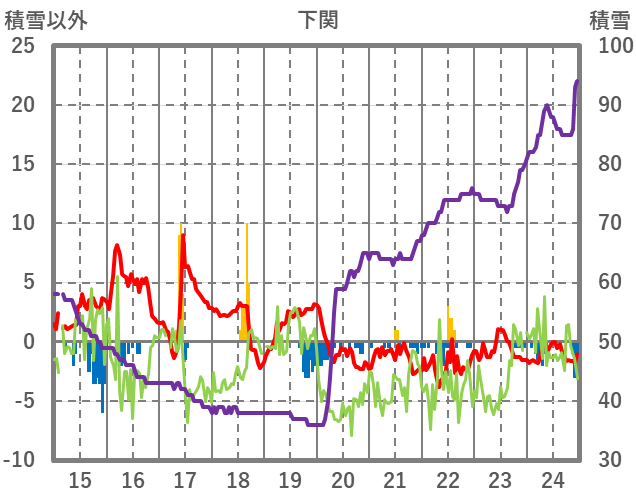 | 日 | 時 | 気温 | 降水 | 風向/風速 | 日照 | 積雪 | 降雪 |