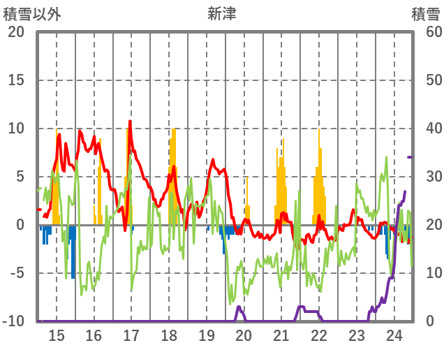 | 日 | 時 | 気温 | 降水 | 風向/風速 | 日照 | 積雪 | 降雪 |