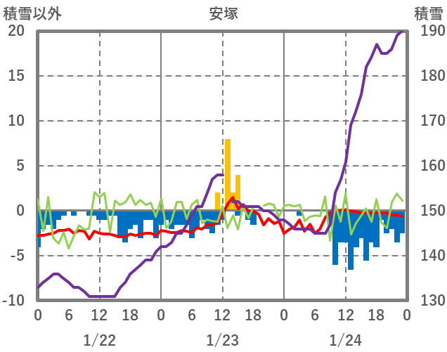 | 日 | 時 | 気温 | 降水 | 風向/風速 | 日照 | 積雪 | 降雪 |