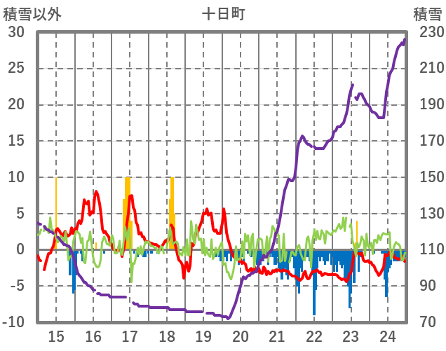 | 日 | 時 | 気温 | 降水 | 風向/風速 | 日照 | 積雪 | 降雪 |