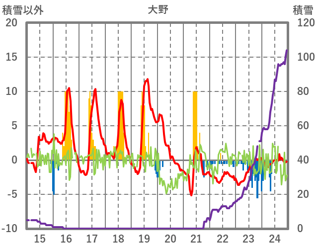| 日 | 時 | 気温 | 降水 | 風向/風速 | 日照 | 積雪 | 降雪 |