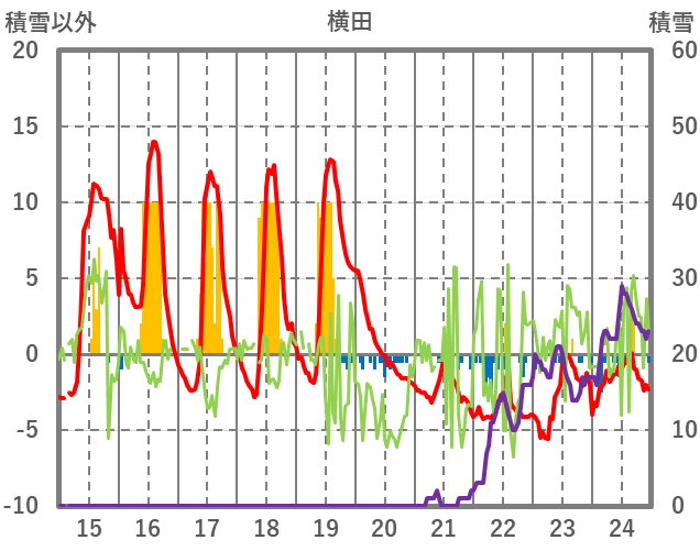 | 日 | 時 | 気温 | 降水 | 風向/風速 | 日照 | 積雪 | 降雪 |