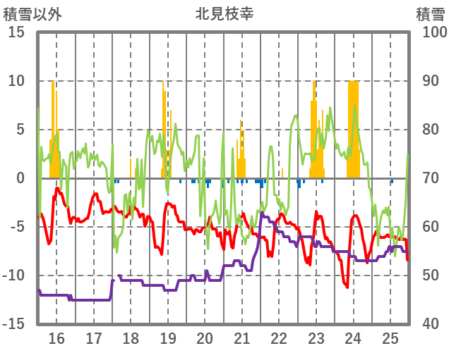 | 日 | 時 | 気温 | 降水 | 風向/風速 | 日照 | 積雪 | 降雪 |