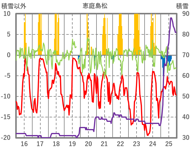 | 日 | 時 | 気温 | 降水 | 風向/風速 | 日照 | 積雪 | 降雪 |