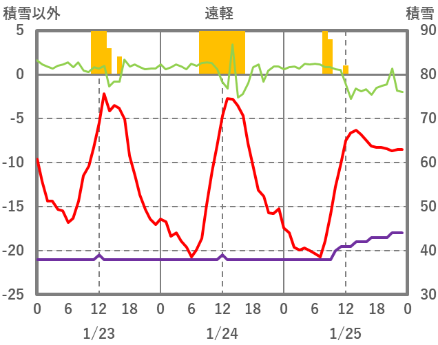 | 日 | 時 | 気温 | 降水 | 風向/風速 | 日照 | 積雪 | 降雪 |