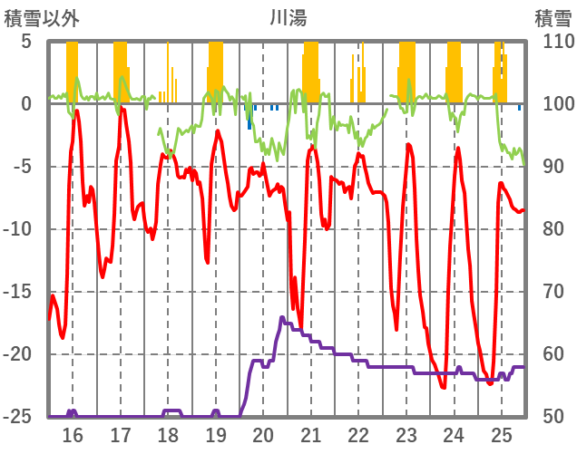 | 日 | 時 | 気温 | 降水 | 風向/風速 | 日照 | 積雪 | 降雪 |
