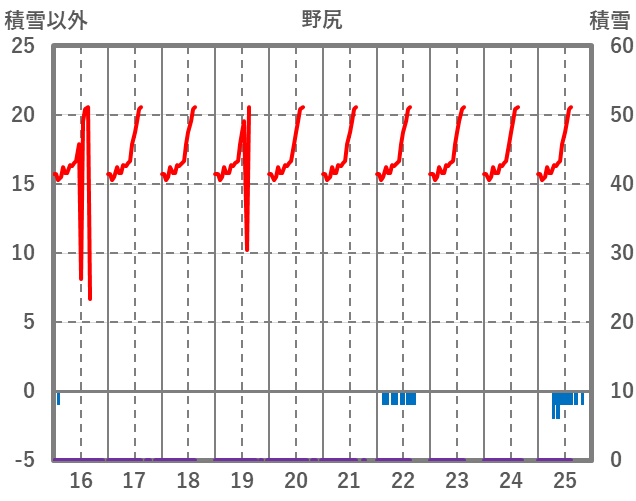 | 日 | 時 | 気温 | 降水 | 風向/風速 | 日照 | 積雪 | 降雪 |