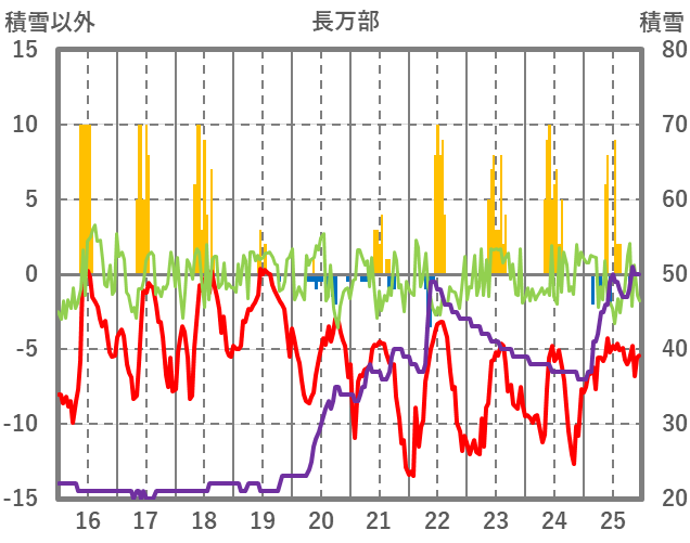 | 日 | 時 | 気温 | 降水 | 風向/風速 | 日照 | 積雪 | 降雪 |