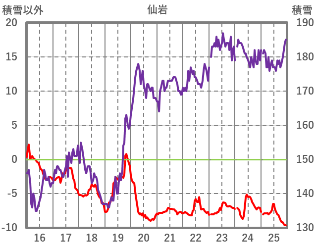 | 日 | 時 | 気温 | 降水 | 風向/風速 | 日照 | 積雪 | 降雪 |