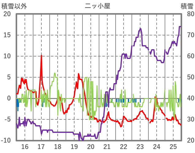 | 日 | 時 | 気温 | 降水 | 風向/風速 | 日照 | 積雪 | 降雪 |