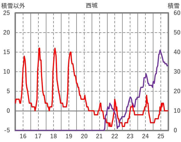 | 日 | 時 | 気温 | 降水 | 風向/風速 | 日照 | 積雪 | 降雪 |