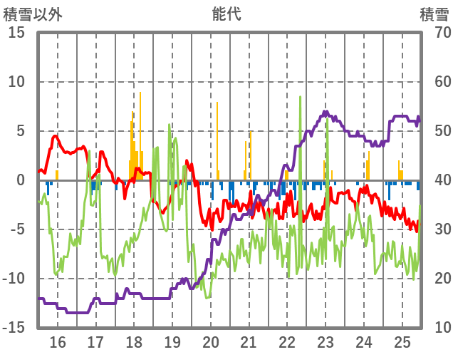 | 日 | 時 | 気温 | 降水 | 風向/風速 | 日照 | 積雪 | 降雪 |