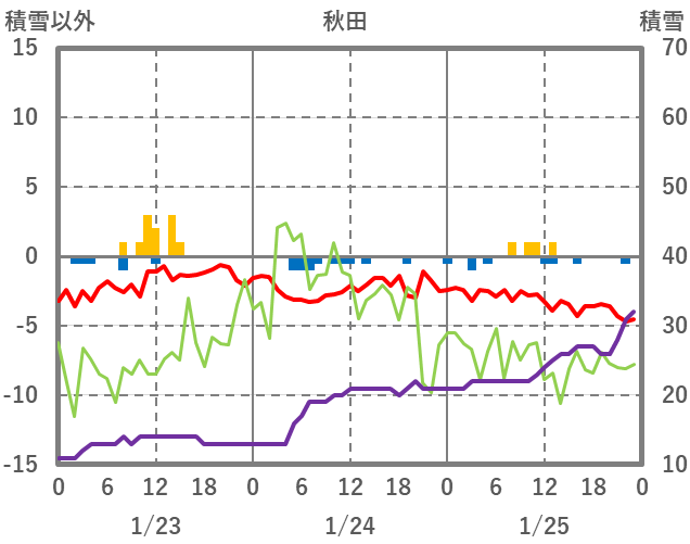 | 日 | 時 | 気温 | 降水 | 風向/風速 | 日照 | 積雪 | 降雪 |
