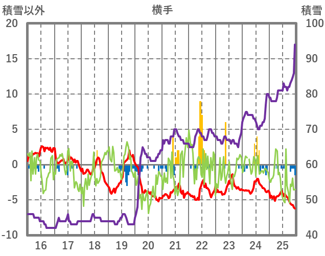 | 日 | 時 | 気温 | 降水 | 風向/風速 | 日照 | 積雪 | 降雪 |