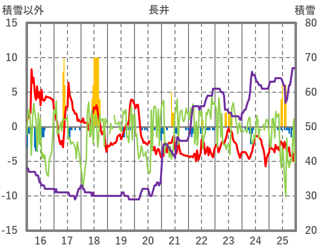 | 日 | 時 | 気温 | 降水 | 風向/風速 | 日照 | 積雪 | 降雪 |