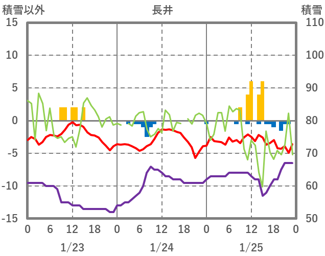 | 日 | 時 | 気温 | 降水 | 風向/風速 | 日照 | 積雪 | 降雪 |