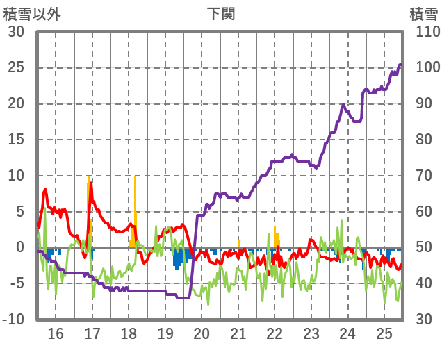 | 日 | 時 | 気温 | 降水 | 風向/風速 | 日照 | 積雪 | 降雪 |
