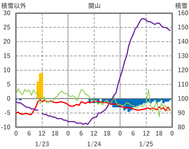 | 日 | 時 | 気温 | 降水 | 風向/風速 | 日照 | 積雪 | 降雪 |