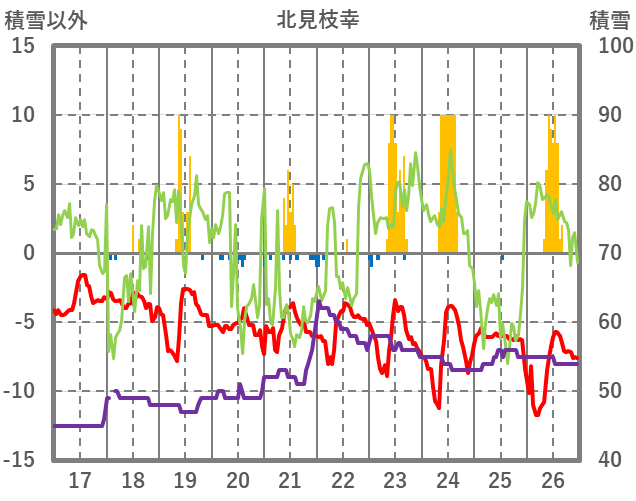 | 日 | 時 | 気温 | 降水 | 風向/風速 | 日照 | 積雪 | 降雪 |
